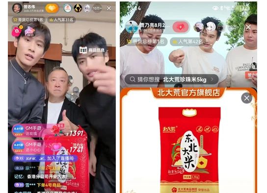 8月21日,北大荒食品集团电商平台联手“疯狂小杨哥”、曾志伟联动向粉丝推介“北大荒”东北大米,开播仅仅半小时,直播间曝光人数8762.2万,观看人数2799.5万,销售订单7万单,销售额97万元;而在8月22日贾乃亮和黄晓明的直播推介中,销售订单再增加2万单,销售额增加27万元。两场直播实现破百万元业绩。