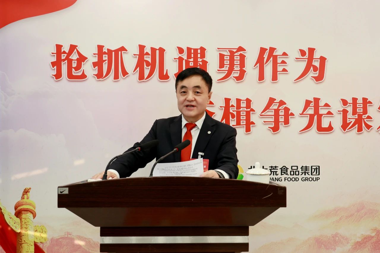 北大荒农垦集团总经理助理林长华作了题为《抢抓机遇勇作为 奋楫争先谋发展 全力谱写高质量发展可持续发展新篇章》的工作报告。详尽回顾总结了食品集团2024年各项工作情况,提出了2025年的发展战略和工作目标。