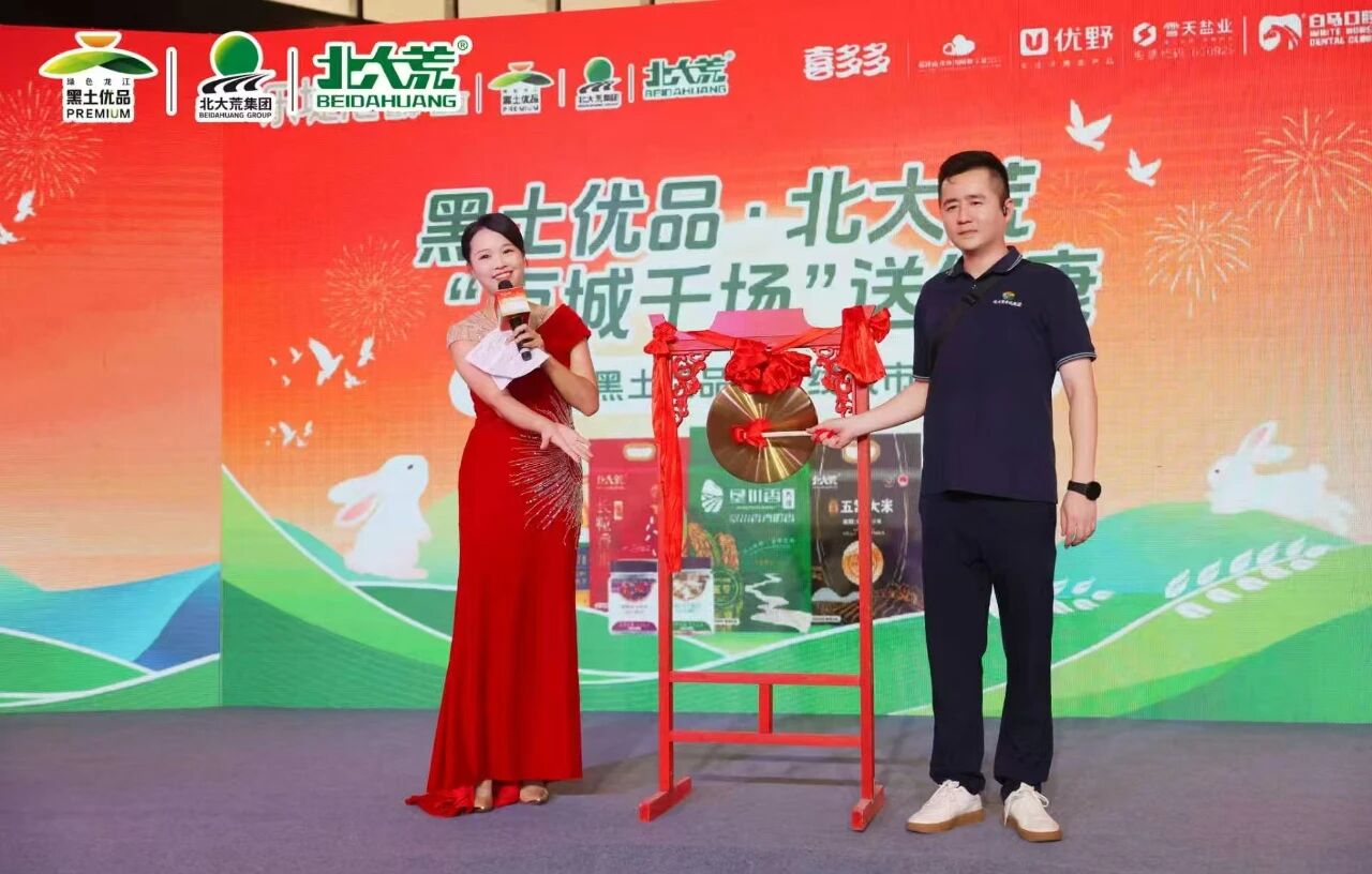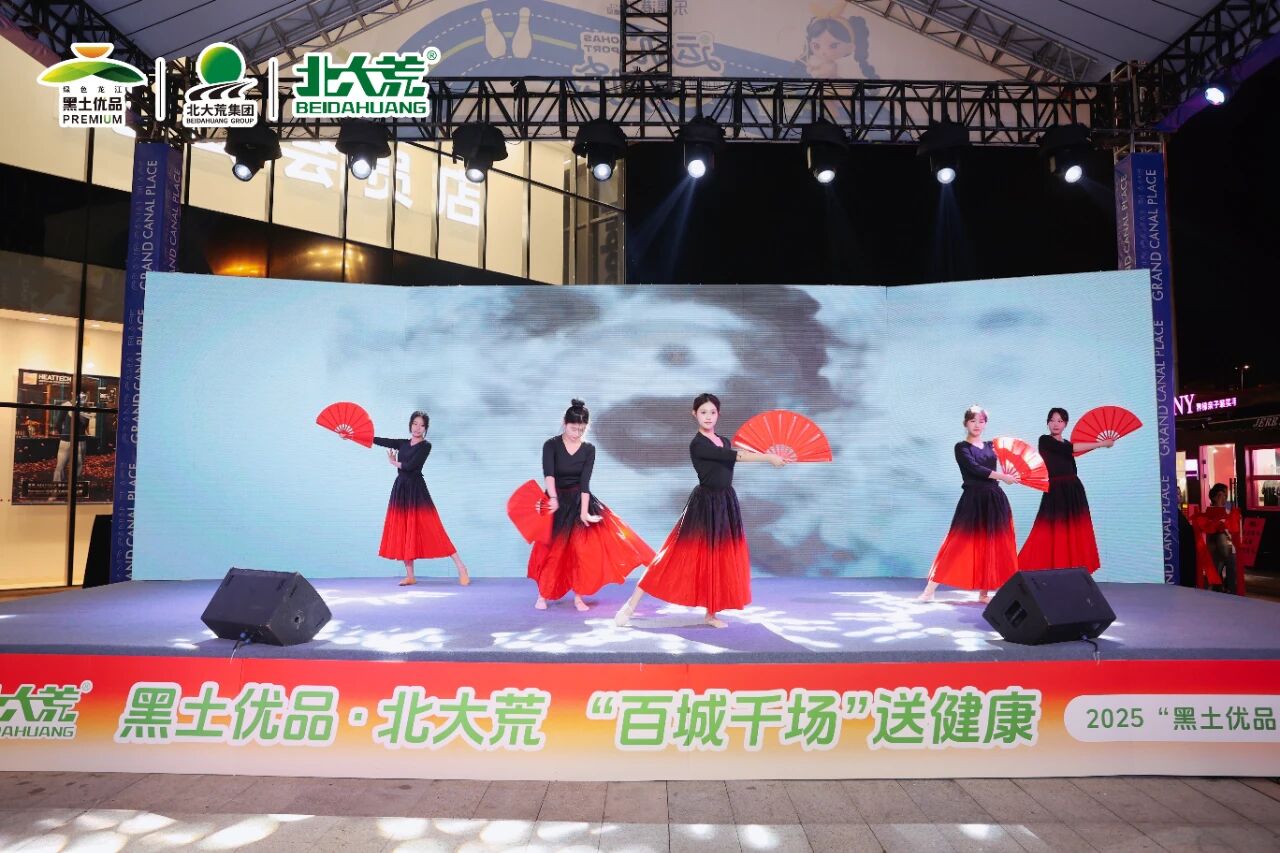 晚上7点,随着一支活力四射的现代舞表演,活动正式拉开帷幕。舞台大屏幕上,北大荒食品集团品牌宣传片循环播放,广袤的黑土地、金黄的稻田画面,让现场观众直观感受到“中国大粮仓”的实力。