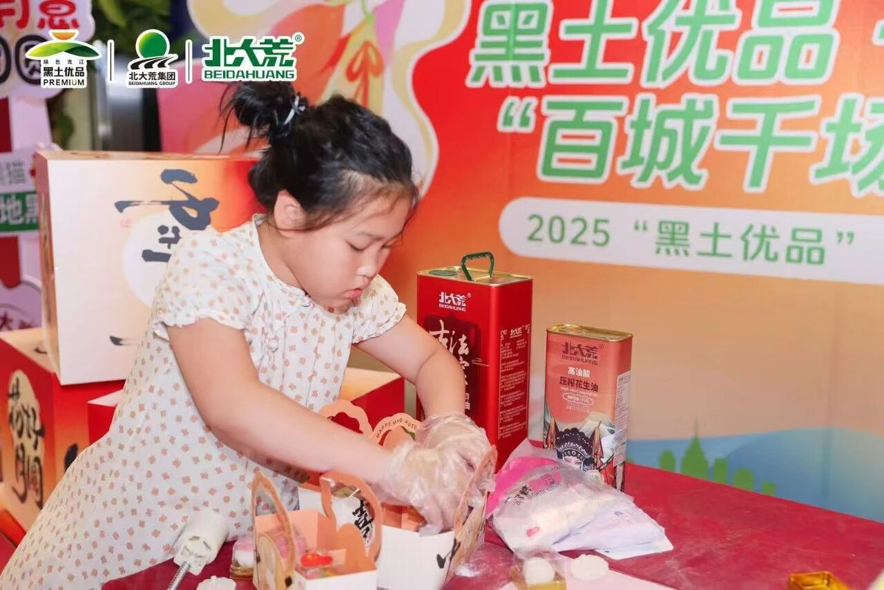 活动现场,4 个主题展位整齐排列,绿色与金色交织的 “黑土优品” 品牌视觉形象格外醒目。粮油专区内,北大荒五常大米、垦川香大米整齐码放,不同规格的食用油旁摆放着饱满的大豆、花生原料样品,让消费者直观感受产品的天然品质;冲调与杂粮专区里,原味、红枣味等多种口味的豆浆粉现场冲泡,透明包装的杂粮与多元粥料组合吸引不少注重健康饮食的居民驻足;山珍干货专区的榛蘑、秋木耳通过干品与泡发样品的对比展示,清晰呈现出产品的优良品质。
