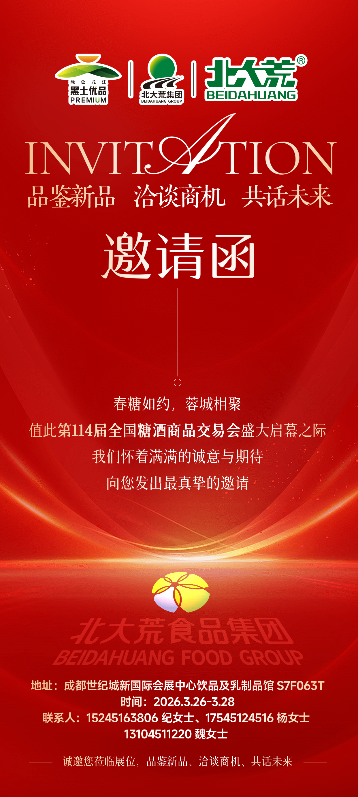 北大荒食品集团诚邀各位嘉宾、合作伙伴及新老朋友莅临展位,共饮一杯纯净甘甜,共品一缕匠心醇香,共话合作新机遇。